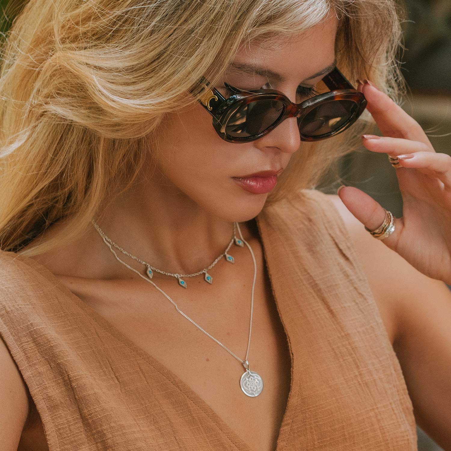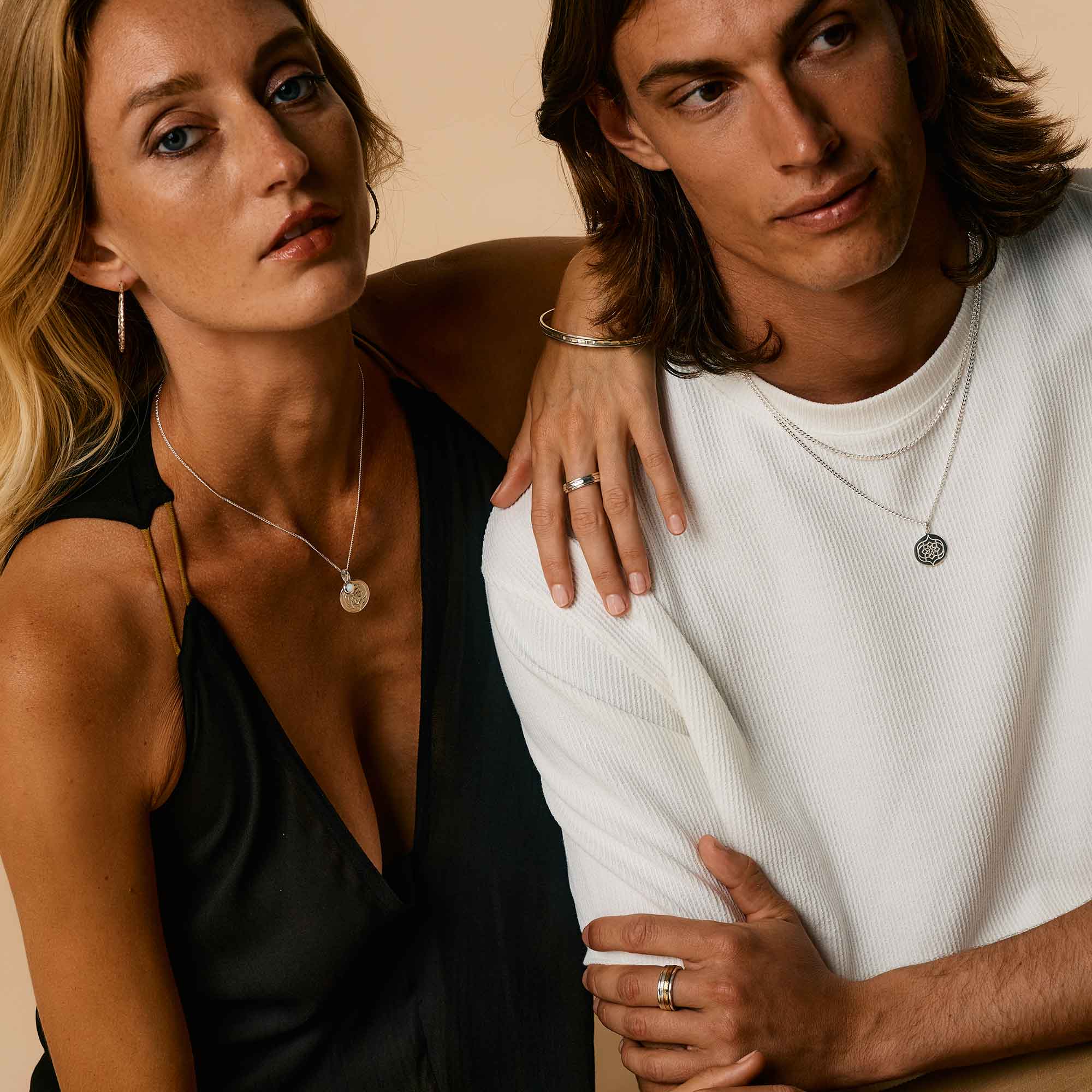 Our Signature CW Motif Unisex Necklace is inspired by the beauty and grandeur of Indian architecture. The silver disc pendant is engraved with the iconic CW symbol. The polished silver disc comes on an adjustable sustainably-sourced silver chain with the potential to add your birthstone for a personal touch.