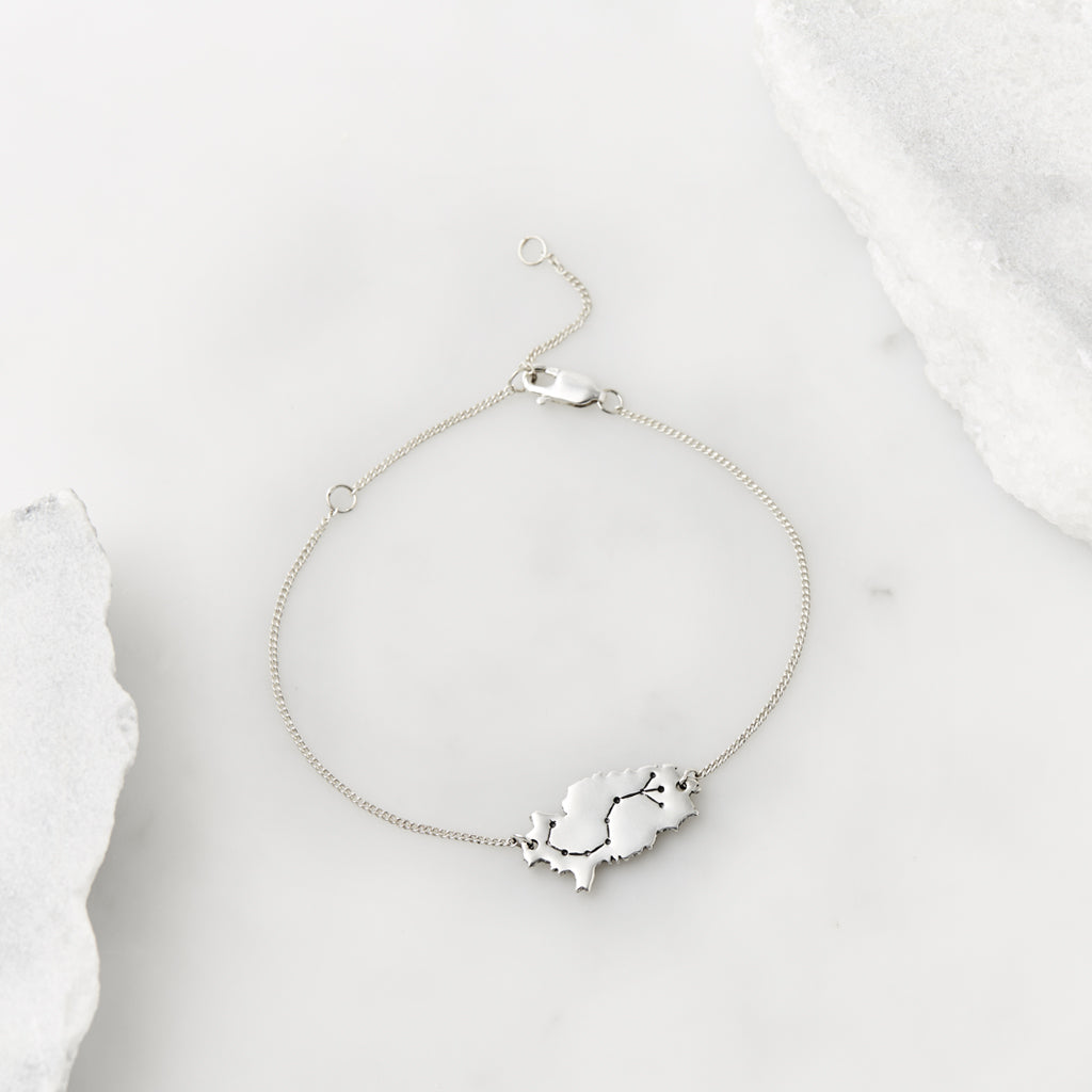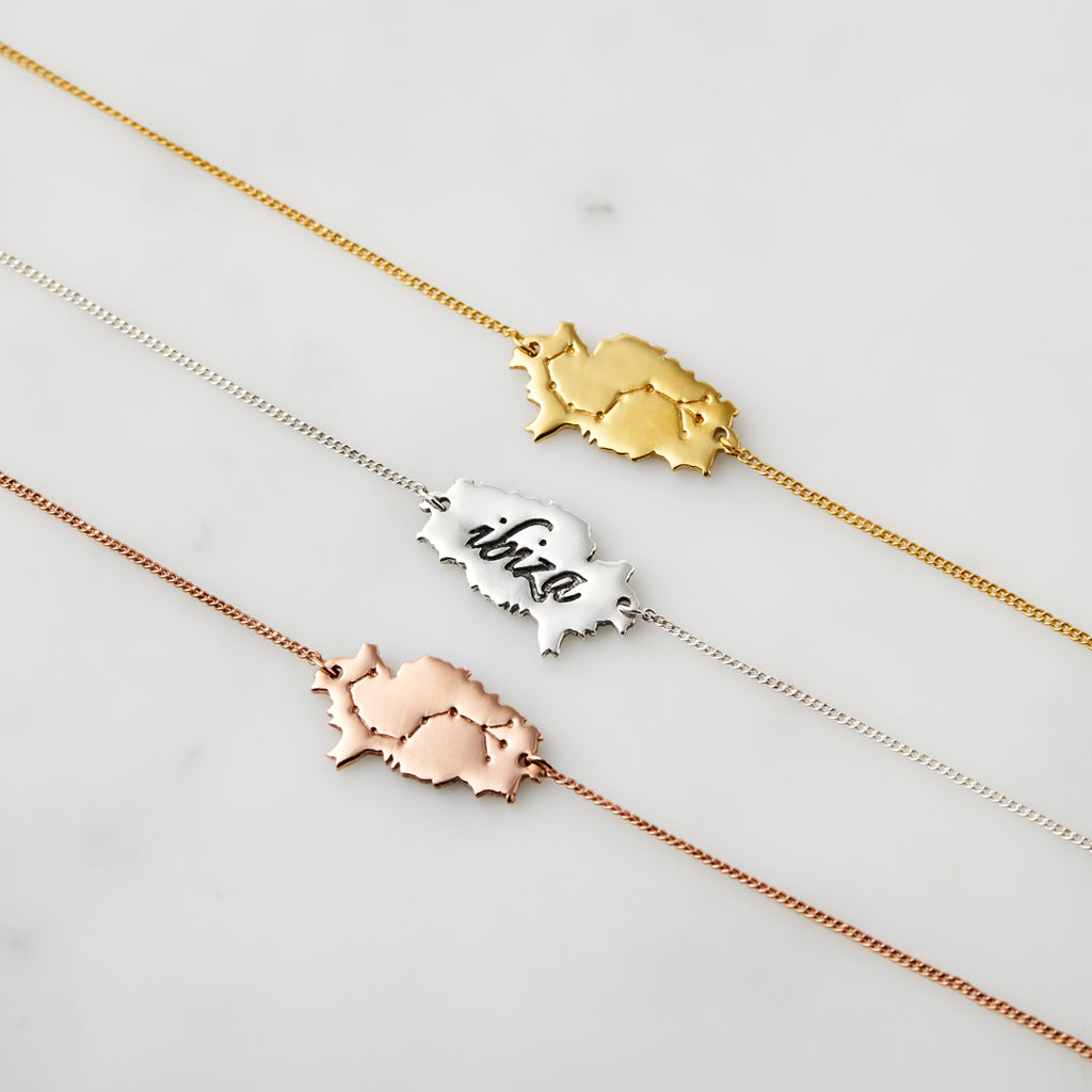 Feel the vibrant energy of Ibiza with our Ibiza Constellation Gold Bracelet. Consciously handcrafted in Sterling Silver, it features the outline of this Mediterranean island etched with the Scorpio constellation on one side and the word Ibiza on the other. It’s a magical stacking bracelet.