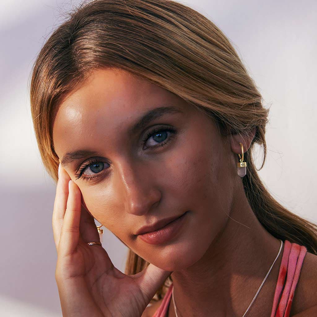 Strengthen relationships and practice self-love with our Open Heart Gold Rose Quartz Hoop Earrings. Ethically handmade in small batches, these gold vermeil hoops feature sustainably sourced rose quartz pink crystals, the stone of universal love, with decorative bead detailing. Fall in love today.
