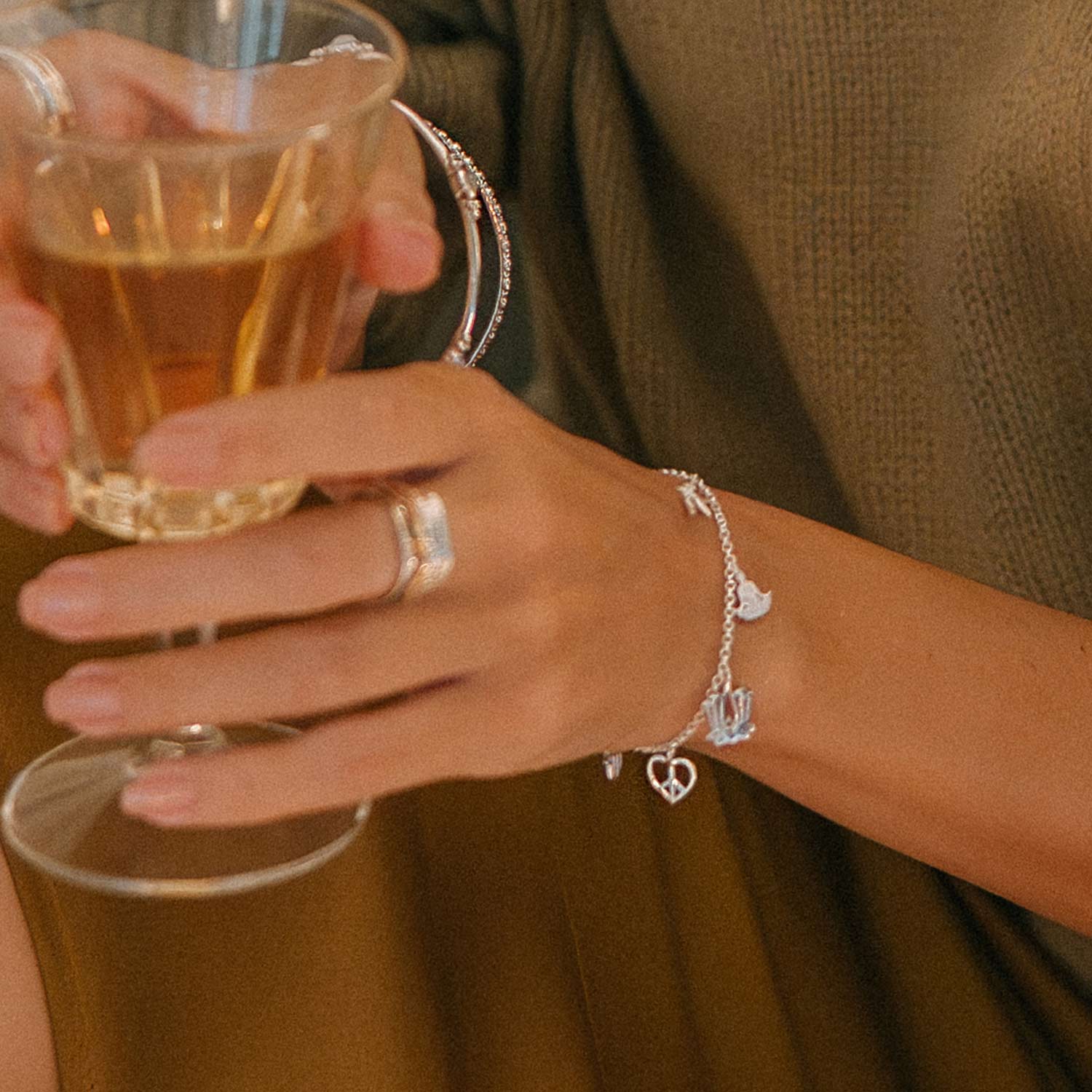 Consciously created with five silver charms, our Peace, Love & Freedom Charm Bracelet has everything you need to make the world a better place. Ethically sourced gemstones and recycled silver make this charm bracelet the perfect gift for those who adore sustainable handmade jewellery.