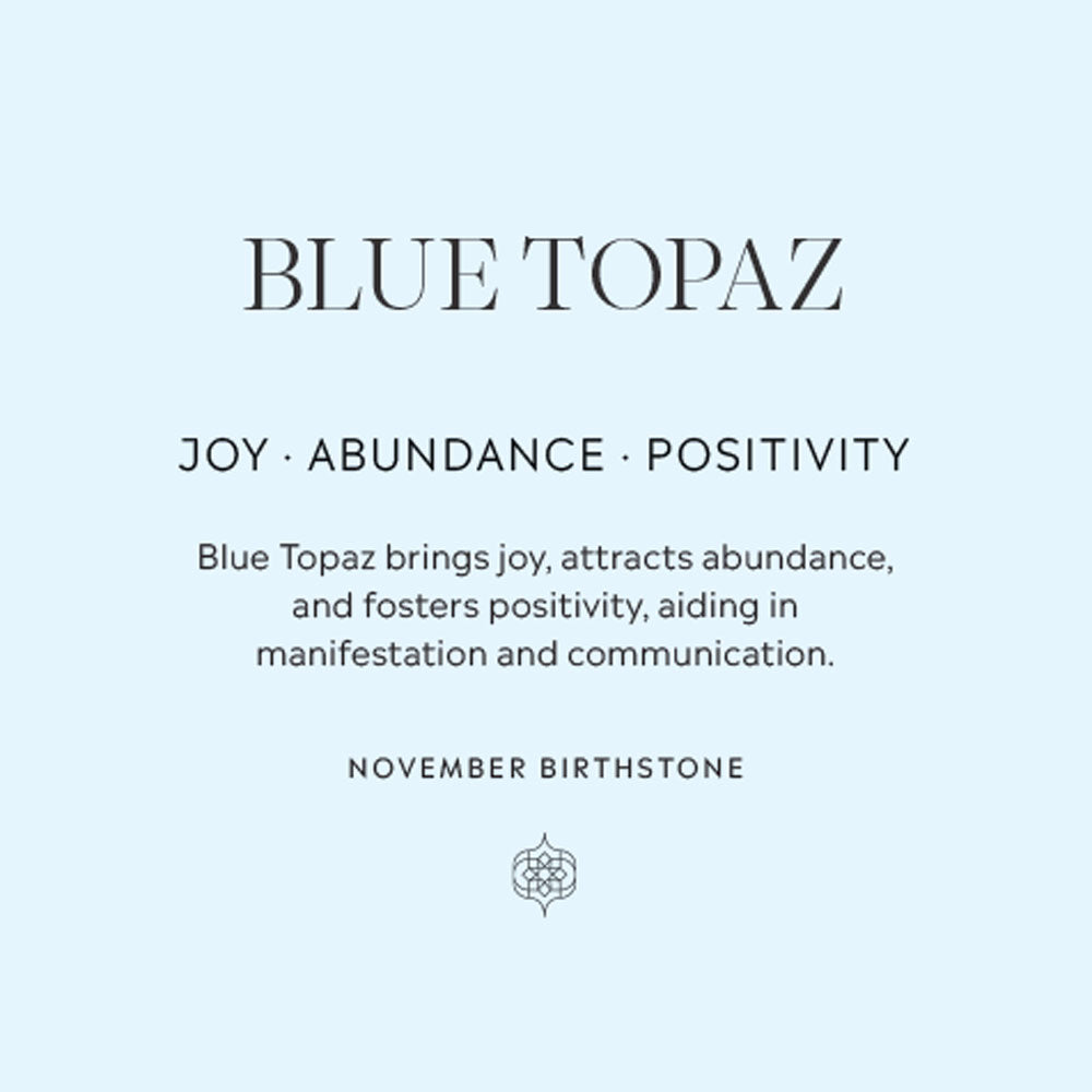 Cool, clear Blue Topaz reflects calm, truth, and communication. Paired with a rich gold Rawa setting, this November birthstone necklace is handmade in India and offers a luminous balance of classic and contemporary birthstone jewellery.