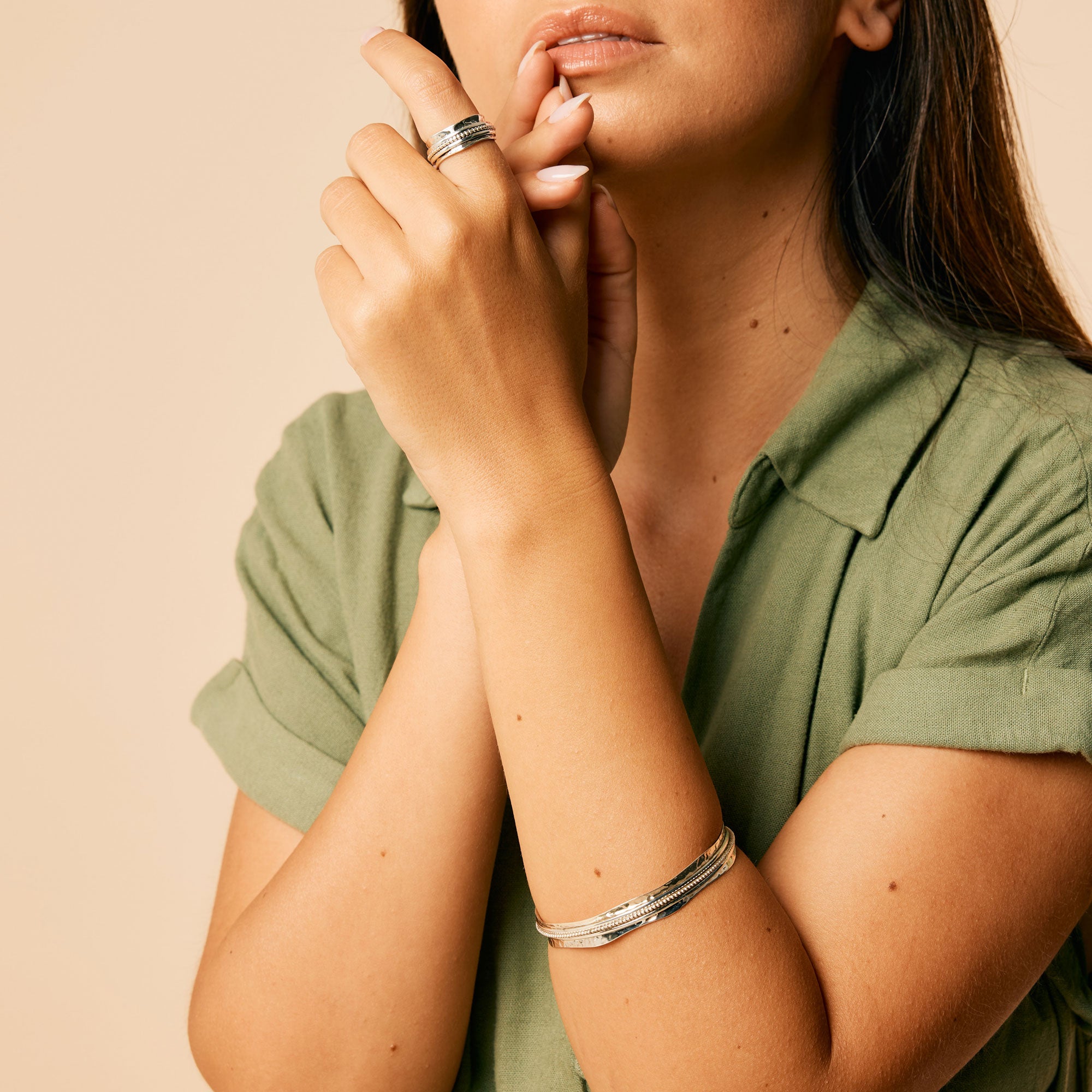 Spinning jewellery is a modern wonder inspired by ancient meditation techniques. Much like the Tibetan prayer wheels used by Buddhist monks for centuries, silver spinning rings spin to soothe the mind in times of stress. Spinning necklaces bring balance and good karma to the soul, while spinner bracelets calm fidgeting hands to instil a sense of well-being.
