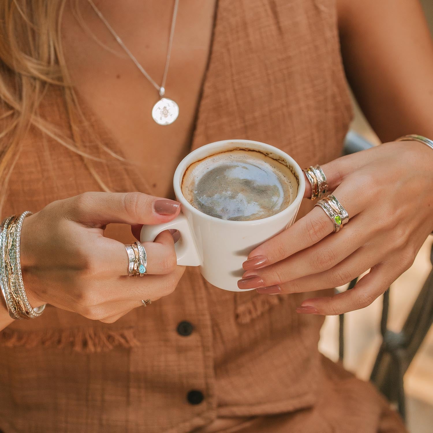Spinning jewellery carries ancient wisdom into the modern world, inspired by the sacred Tibetan prayer wheels used by Buddhist monks. Silver spinning rings invite moments of peace, calming the mind in times of stress. When adorned with a gemstone of your choice, each piece becomes even more meaningful, as the unique properties of each stone offer support—whether for grounding, healing, or inspiring positive energy.