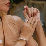 We are not a fast-fashion brand. Far from it. We create timeless pieces of jewellery that you’ll want to wear for a lifetime. By using recycled materials, investing in sustainably sourced gemstones, and curbing our carbon footprint, we support a circular economy and empower those who make our ethical jewellery just as much as those who wear it.