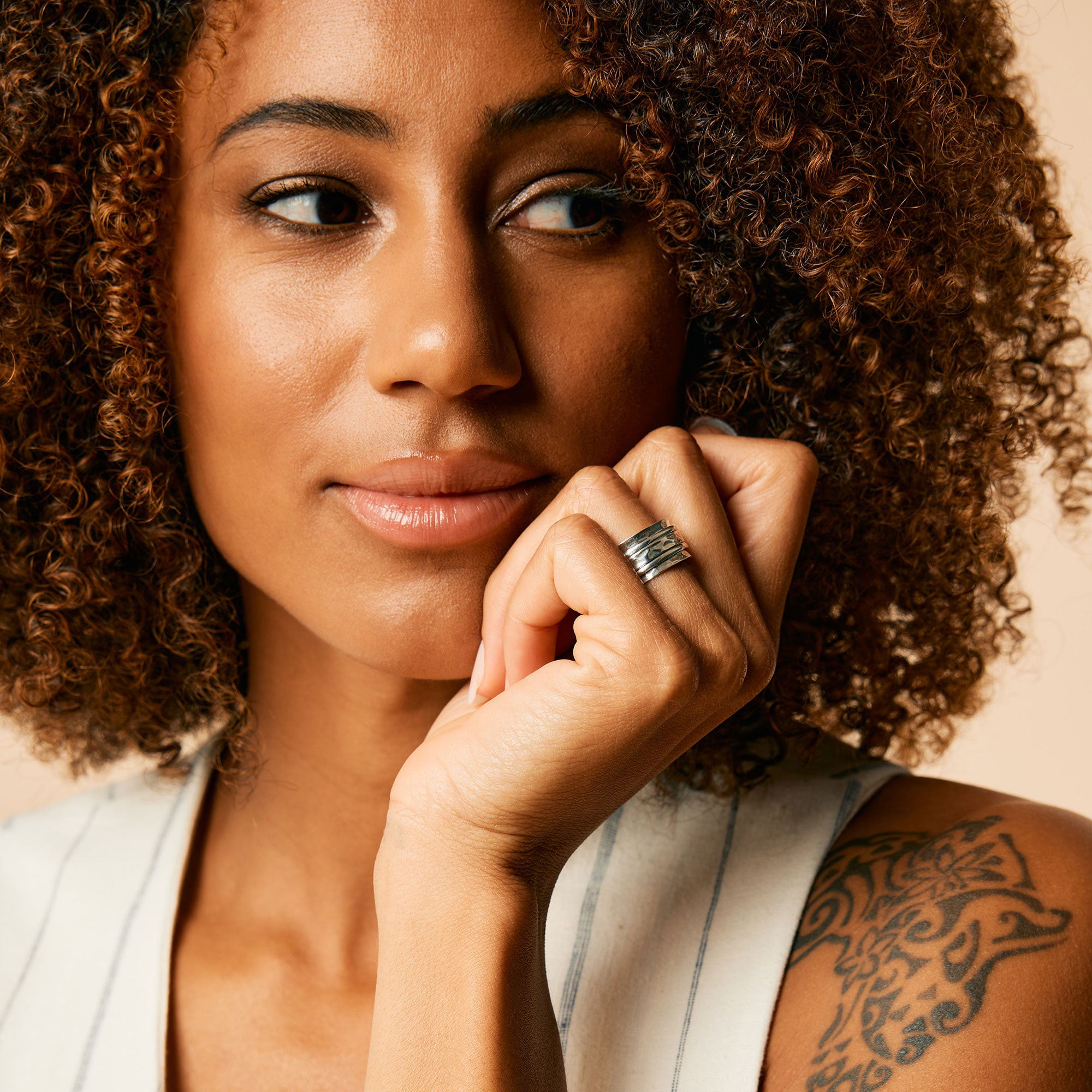 Our signature spinning jewellery is an integral part of our collection, and includes our most popular pieces, due to their unusual nature and calming qualities. Our carefully selected Spinning Sets bring together complementary pieces from our favourite designs, including matching rings, bracelets and pendants, making a sublime addition to any jewellery collection or a truly emotive and expressive gift for a loved one.
