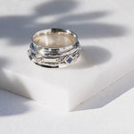 Our Divinity Princess Spinning Ring is beautifully handcrafted with recycled silver and sustainably sourced Iolite, a purple gemstone, allowing you to wear it with a clear conscience. Kind on the planet and pleasing to the eye, it is the perfect meditation ring for spiritual souls. Style, stack, and spin your way to serenity.